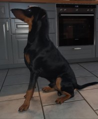We mengen appelvlokken door het eten van onze Duitse Pinscher Rico van 7 maanden. Hij eet het graag. Hij krijgt ook elke dag vleesvlokken met wild. Daar is hij gek op. Zijn hoofdvoeding bestaat uit Anifit natvoer. We doen er ook aardappelvlokken en wortelvlokken bij. We zijn pas een maand geleden overgestapt op Anifit voer. We hebben nu de indruk dat hij volhardender is geworden.